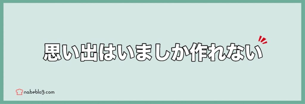 お金は後からでも稼げます。 数字はこれから増やすことができます。 でも、「幼い子供たちとの思い出」にお金を換金することは、一生できません。