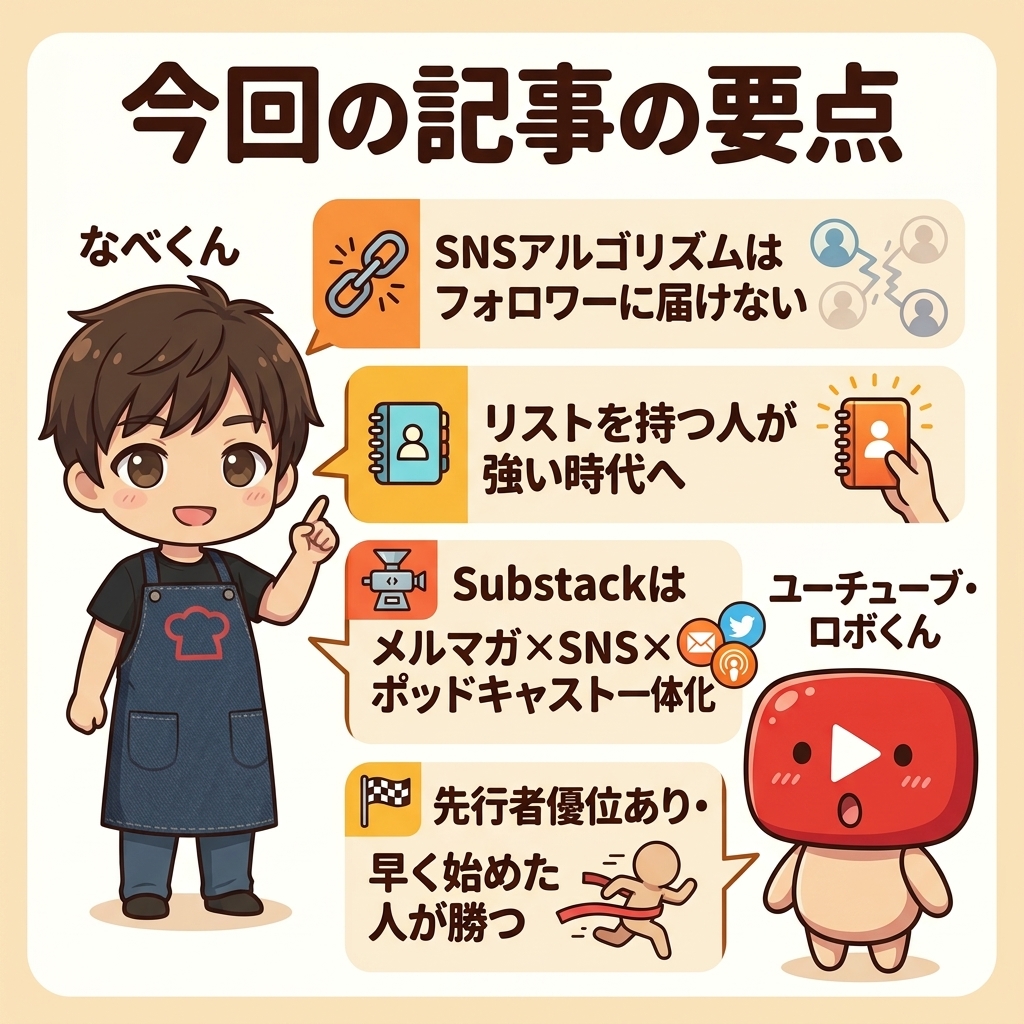 Substackも、今まさにその「早く始めた人が圧倒的に有利」な時期にあると思っています。