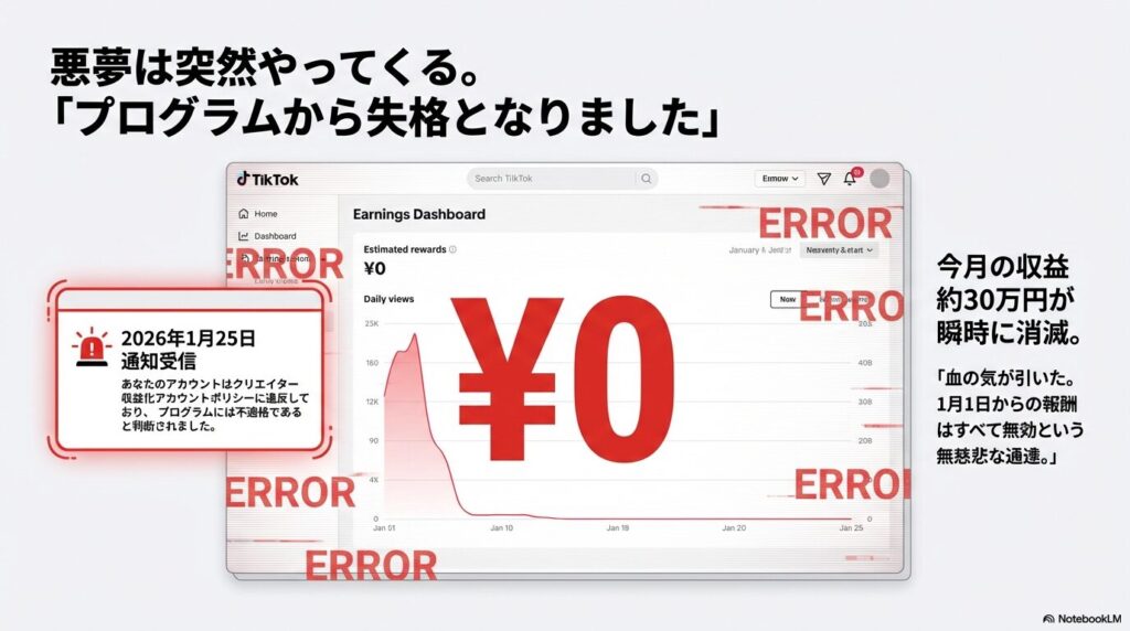 もし今、同じような画面が出て絶望しているクリエイターさんがいたら、深呼吸してください。 あなたのコンテンツが本物なら、必ず取り戻せます。
