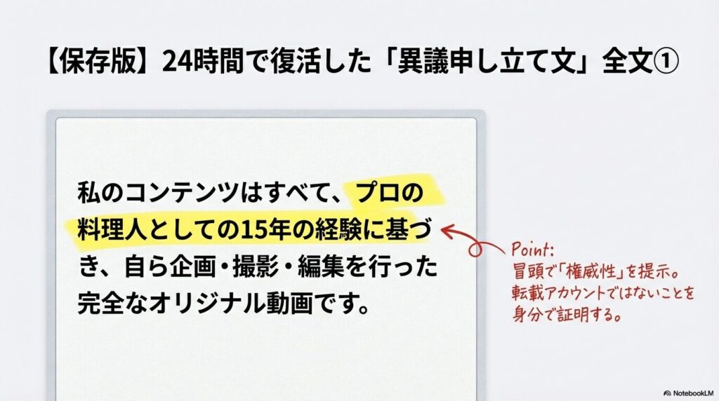 ここで「俺はオリジナルだ!ふざけるな!」と怒りのままに送信ボタンを押してはいけません。相手はAI、もしくはマニュアル通りの担当者です。 感情論ではなく「論理」と「証拠」で殴り返す必要があります。
